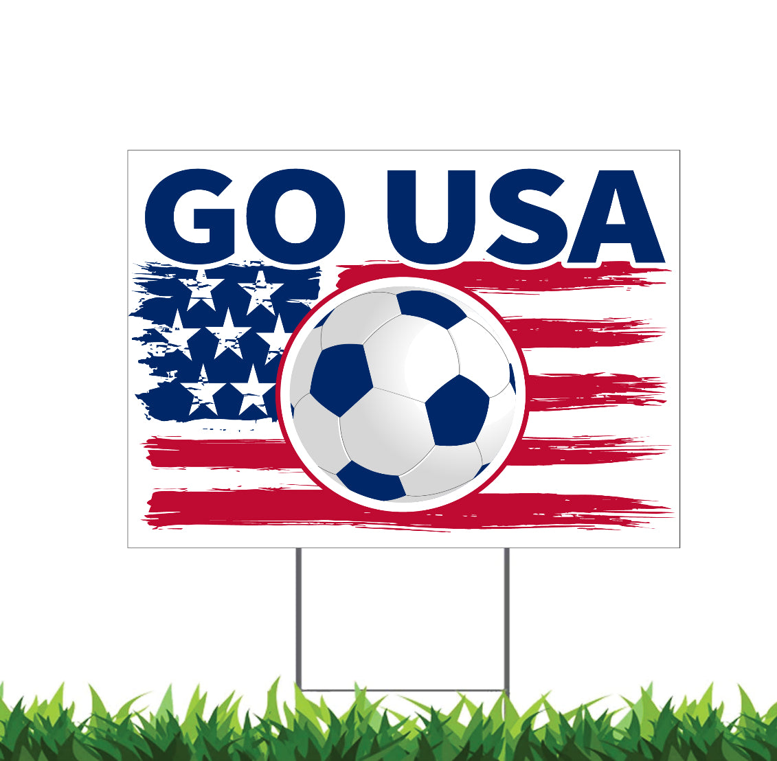 USA Soccer, Go USA Sign, 18x12, 24x18, 36x24, Yard Sign, H-Stake Included, v2